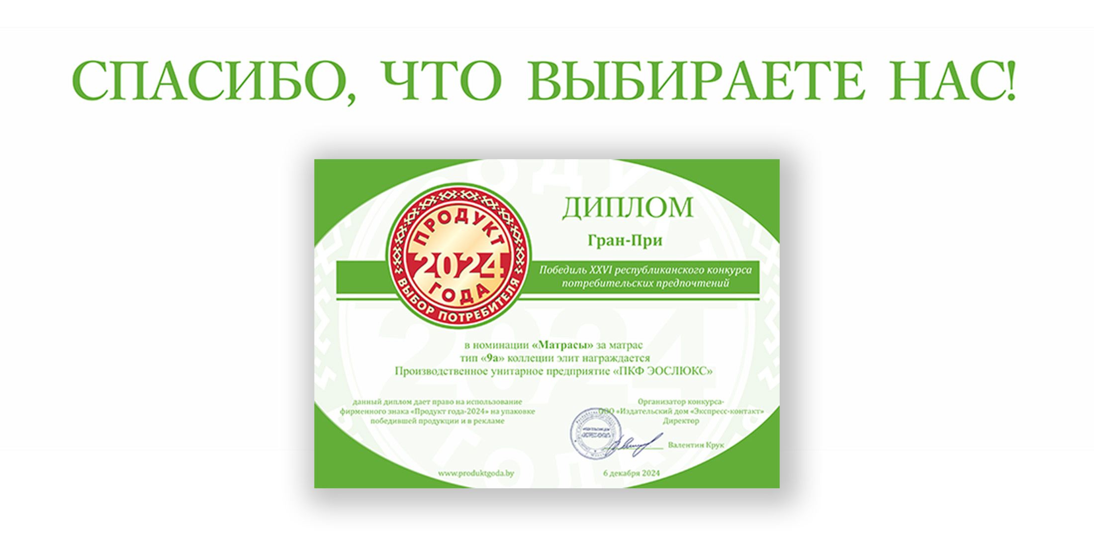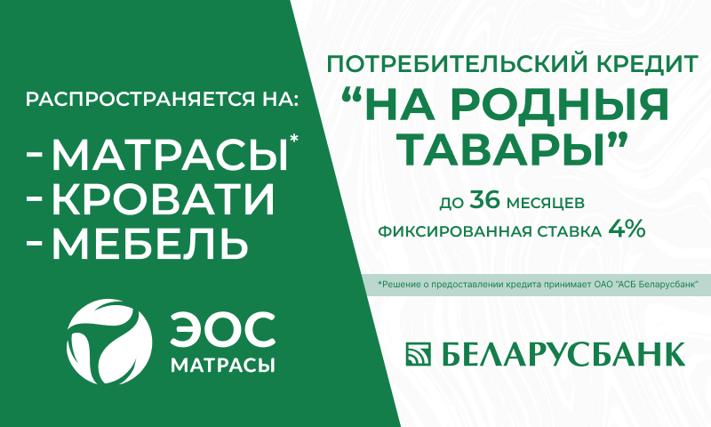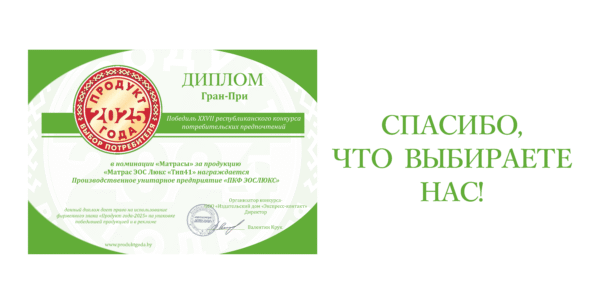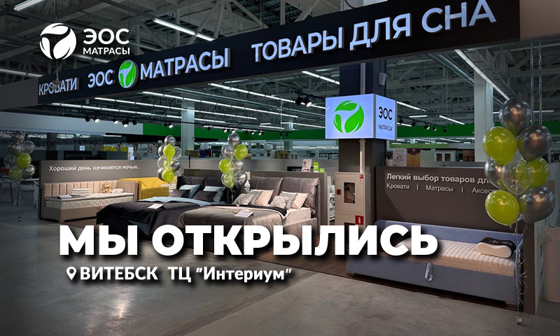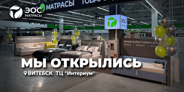 У НАС ПРИЯТНО ПОКУПАТЬ 32 ГОДА С ВАМИ Столько лет мы производим матрасы для Вас СЕРТИФИКАТЫ Вся наша продукция имеет сертификаты качества АКЦИИ и СКИДКИ Приобретайте наши товары по сниженной цене РАССРОЧКА На все товары действует рассрочка до 8 месяцев! БЕСПЛАТНАЯ ДОСТАВКА Доставим Ваш заказ от 300 р. БЕСПЛАТНО! ГАРАНТИЯ На пружинный блок даём гарантию 5 ЛЕТ! 32 года с Вами Акции Скидки Расссрочка Сертификаты качества Гарантия на пружинный блок Бесплатная доставка Популярные Категории Матрасы Наматрасники Топперы Одеяла Подушки Кровати Корпусная мебель Лидеры Продаж Кредит 4%Хит продаж Добавить к сравнению Быстрый просмотр Добавить в Избранное Матрас ЭОС Премьер Тип 9bНагрузка: 150 кгВысота: 21 смЖесткость: Высокая/Средняя Оценка 5.00 из 5 от 464,58 BYN Подробнее Этот товар имеет несколько вариаций. Опции можно выбрать на странице товара. Добавить к сравнению Быстрый просмотр Добавить в Избранное Подушка ЭОС Фея Оценка 5.00 из 5 от 33,38 BYN Подробнее Этот товар имеет несколько вариаций. Опции можно выбрать на странице товара. -10%Кредит 4% Добавить к сравнению Быстрый просмотр Добавить в Избранное Матрас ЭОС Идеал Тип 6aНагрузка: 130 кгВысота: 21 смЖесткость: Высокая/Средняя Оценка 4.95 из 5 от 374,96 BYN337,46 BYN Подробнее Этот товар имеет несколько вариаций. Опции можно выбрать на странице товара. -26%Кредит 4% Добавить к сравнению Быстрый просмотр Добавить в Избранное Матрас ЭОС Идеал Тип 1a/2Нагрузка: 120 кгВысота: 18 смЖесткость: Низкая/Средняя Оценка 4.97 из 5 от 263,73 BYN216,26 BYN Подробнее Этот товар имеет несколько вариаций. Опции можно выбрать на странице товара. -15%Кредит 4% Добавить к сравнению Быстрый просмотр Добавить в Избранное Матрас ЭОС Идеал Тип 2Нагрузка: 110 кгВысота: 18 смЖесткость: Низкая/Средняя Оценка 4.96 из 5 от 263,25 BYN223,76 BYN Подробнее Этот товар имеет несколько вариаций. Опции можно выбрать на странице товара. -10%Кредит 4%Подушка в подарок* Добавить к сравнению Быстрый просмотр Добавить в Избранное Матрас ЭОС Элит Тип 9aНагрузка: 150 кгВысота: 23 смЖесткость: Высокая/Средняя Оценка 5.00 из 5 от 678,90 BYN658,04 BYN Подробнее Этот товар имеет несколько вариаций. Опции можно выбрать на странице товара. -10%Кредит 4% Добавить к сравнению Быстрый просмотр Добавить в Избранное Матрас ЭОС Идеал Тип 8Нагрузка: 130 кгВысота: 21 смЖесткость: Средняя Оценка 5.00 из 5 от 366,05 BYN329,45 BYN Подробнее Этот товар имеет несколько вариаций. Опции можно выбрать на странице товара. -19%Кредит 4% Добавить к сравнению Быстрый просмотр Добавить в Избранное Матрас ЭОС Аспект Тип 7aНагрузка: 130 кгВысота: 20 смЖесткость: Низкая/Средняя Оценка 4.95 из 5 от 389,10 BYN345,73 BYN Подробнее Этот товар имеет несколько вариаций. Опции можно выбрать на странице товара. Кредит 4%Рекомендуем Добавить к сравнению Быстрый просмотр Добавить в Избранное Матрас ЭОС Премьер Тип 5aНагрузка: 150 кгВысота: 21 смЖесткость: Средняя Оценка 4.97 из 5 от 489,59 BYN Подробнее Этот товар имеет несколько вариаций. Опции можно выбрать на странице товара. -15% Добавить к сравнению Быстрый просмотр Добавить в Избранное Наматрасник защитный ЭОС «Свежесть» Оценка 5.00 из 5 от 77,49 BYN65,87 BYN Подробнее Этот товар имеет несколько вариаций. Опции можно выбрать на странице товара. Добавить к сравнению Быстрый просмотр Добавить в Избранное Наматрасник коррекционный ЭОС Топп 3Высота: 6 смЖесткость: Средняя Оценка 5.00 из 5 от 169,46 BYN Подробнее Этот товар имеет несколько вариаций. Опции мож