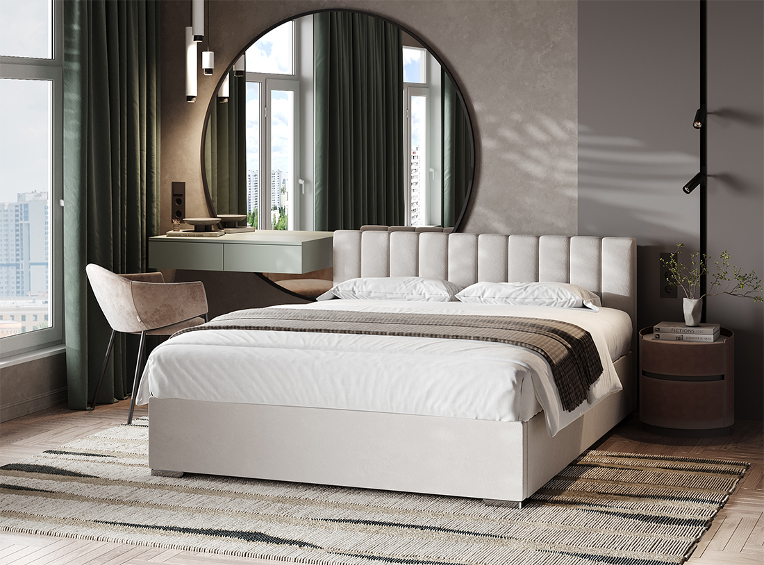 Кровать «Agata» выполнена в сдержанном лаконичном стиле и понравится ценителям простых и понятных форм в интерьере. Эта кровать выполнена без царг, означает, что размер спального места соответствует габаритам кровати по ширине, что делает её особенно удобной для небольших помещений и позволяет максимально эффективно использовать пространство. Кровать «Agata» компакт комплектуется удобным изголовьем с вертикальными полосами в виде декора. К ней отлично подойдет матрас ЭОС Тип 4/5