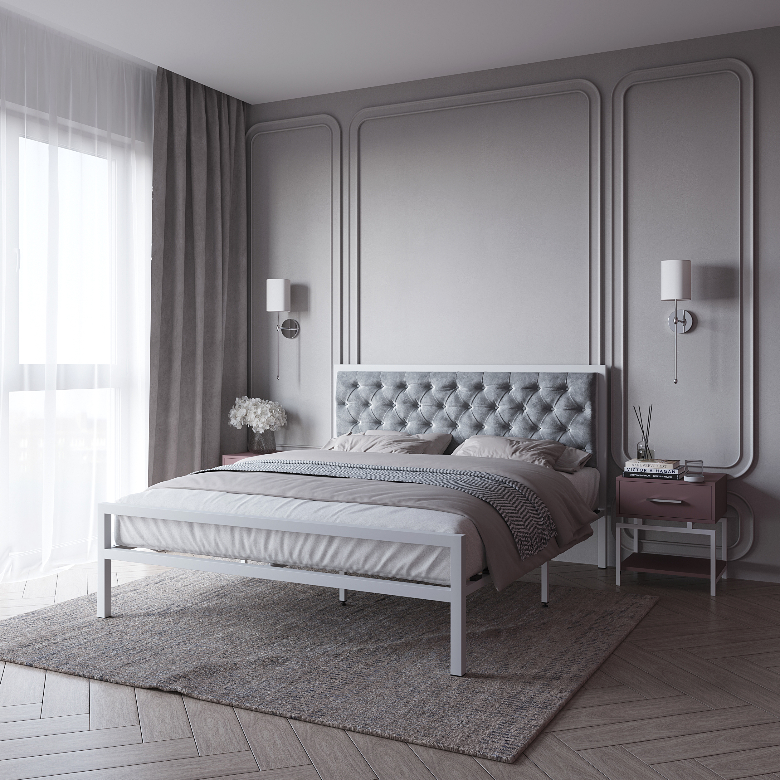 Кованая металлическая кровать Ильнара с мягким изголовьем — прекрасный выбор для комфортного сна. Изголовье с каретной стяжкой внесет роскошь и комфорт в интерьер вашей спальни! Мягкое изголовье ассоциируется с безопасностью и заботой, способствует расслаблению и повышает качество сна! На него приятно опираться при чтении книги или просмотре любимого сериала. Такая модель выглядит элегантно и уютно! Материал изголовья: экокожа либо велюр Ares. К ней отлично подойдет матрас ЭОС Тип 5а.