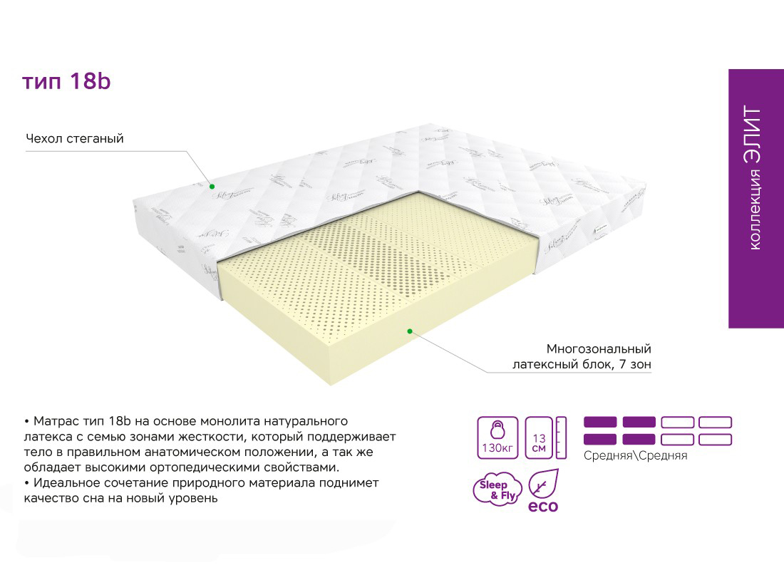 Матрас EOS Элит 18b –это матрас с 7 зонами жесткости, которые поддерживают тело в правильном анатомическом положении, а также обладает высокими ортопедическими свойствами. Идеальное сочетание природного материала поднимает качество сна на новый уровень.