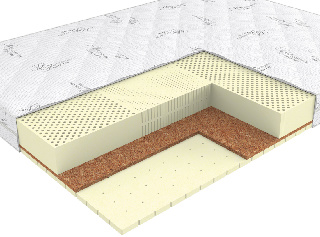 Натуральный гипоаллергенный материал. Благодаря пропитке из натурального латекса, волокна прочно скреплены в цельную плиту. Латексированная кокосовая плита придает матрасу жёсткость и обладает бактерицидными свойствами. Производство – Enkev, Польша.