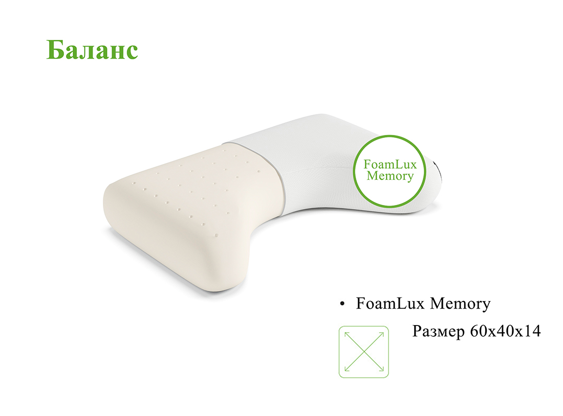 Ортопедическая подушка «Баланс» — это специальное изделие, разработанное для обеспечения комфорта и поддержки во время отдыха. Вырез под плечо и углубление по центру в сочетании с эффектом «памяти» вязкоэластичного материала создают с одной стороны правильное физиологическое положение головы и шеи, с другой – комфорт во время сна, как на спине, так и на боку. Другая сторона подушки имеет классическую форму и позволяет расширить ее функциональное использование. Конструкция подушки специально разработана для полноценной разгрузки мышц шеи и плечевого пояса. Сон становится более глубоким и способствует лучшему эмоциональному состоянию днем.