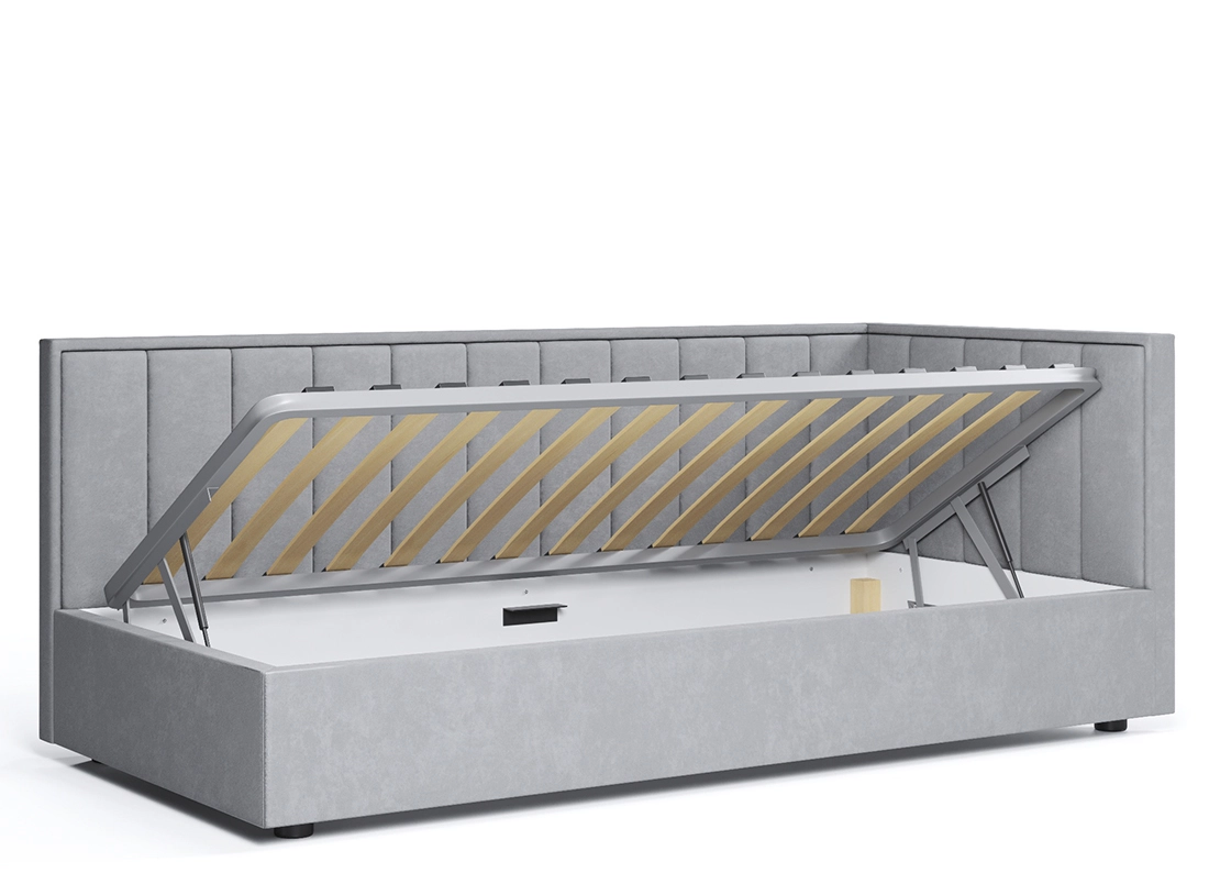 Кровать «Agata» от интернет-магазина ЭОС, производится со встроенным основанием с ортопедическими ламелями. Модель в мягкой обивке оборудована наборными бортиками с вертикально идущими фактурными линиями. Для постельного белья предусмотрена ниша. К кровати отлично подойдет матрас ЭОС Тип 5а.