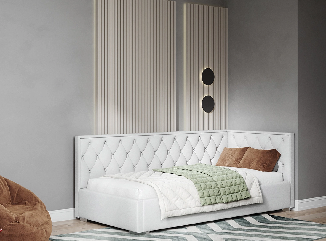 Кровать «Royal» от интернет-магазина ЭОС, производится со встроенным основанием с ортопедическими ламелями. Кровать прекрасно впишется в интерьер любой детской. Высокие спинки кровати защитят ребенка от падения и холодных стен. Глубокая утяжка на спинках кровати добавит нежности в атмосферу комнаты ребенка.