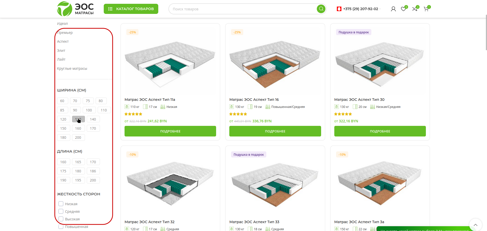 1. Зайдите в тот раздел каталога, который вас интересует. При необходимости воспользуйтесь фильтрами слева, чтобы выбрать интересующие вас параметры товара:
