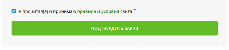 7. Если «Пользовательское соглашение» Вас устроило, необходимо отметить галочкой данный пункт и нажать кнопку «ПОДТВЕРДИТЬ ЗАКАЗ»