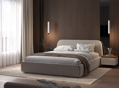 У нас можно заказать онлайн или купить в Минске полуторную кровать со встроенным металлическим или деревянным основанием с текстильной обивкой. Каркас опирается на подиум или ножки. Они жёстко поддерживают основание, защищают от повреждений, выполняют декоративную функцию.