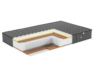 Такой матрас из латекса с кокосом обеспечивает необходимую терморегуляцию и поддержку тела. Его особое преимущество – монолитный блок, характеристики которого соответствуют независимому пружинному блоку.